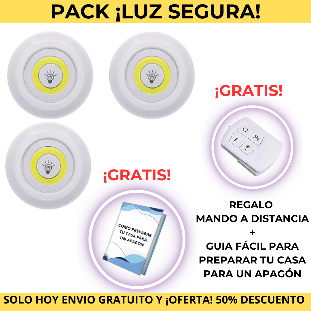 💡 Pack LUZ SEGURA – 3 Luces LED + REGALO Mando + Guía exclusiva: “Cómo preparar tu casa para Apagones " ¡GRATIS!
