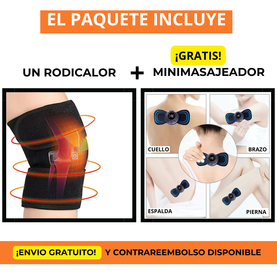 Por tiempo limitado, con cada compra de RodiCalor™, te llevas un Mini Masajeador Portátil GRATIS. Úsalo en espalda, cuello, piernas y brazos para un alivio total en cualquier momento.